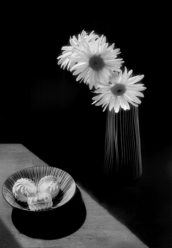 Троицкий Андрей, Как говорится "на вкус и цвет..." Полоски листочков хризантемы перекликаются с полосками зефира...А также полоски на вазе и полоски на чашке инвертируются по цвету и хорошо перекликаются! С гастрономической точки зрения не рассматриваю! Улыбка